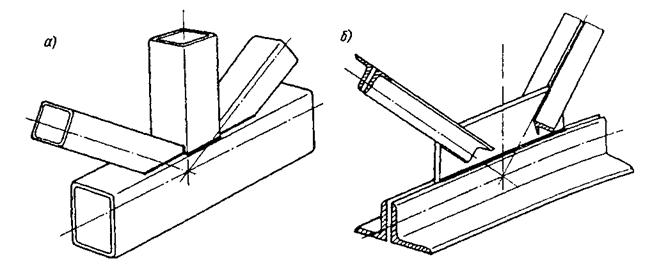 а – с непосредственным примыканием элементов; б – на фасонках