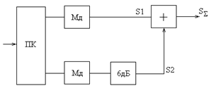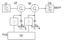 Нелинейный модулятор на ПЧ: – задающий генератор формирует необходимое число сигналов ПЧ с дискретными фазовыми сдвигами и мультиплексор, управляемого с выхода преобразователя кода.