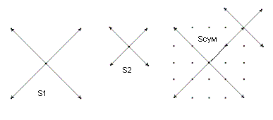 Сигнал КАМ-16 может быть получен сложением двух сигналов ОФМ-4, один из которых в два раза больше по амплитуде.