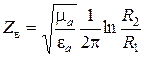5. Величина, которая равна отношению амплитуды напряжения к амплитуде тока в бегущей волне, называется волновым сопротивлением Z вкоаксиального кабеля. Она равна для кабеля: