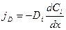Di - коэффициент диффузии иона или незаряженной частицы. Это величина постоянная, зависящая только от температуры, а также (в общем случае) от ионной силы раствора. По-другому этот закон можно записать в следующем виде.
