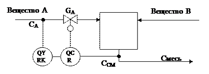 Комбинированная АСР – многоуровневая система регулирования, состоящая из одноконтурной АСР и динамического компенсатора. Такая система обеспечивает инвариантность регулируемого параметра по отношению к основному возмущению. Применяется, когда есть существенные измеряемые возмущения. Пример комбинированной АСР с подключением компенсатора на вход регулятора