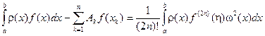 Мы предполагаем, что интеграл в левой части существует. Для многочлена Р (х), как многочлена степени не выше 2 п -1, квадратурная формула точна, т.е.