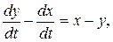 Розв’язування. Це нормальна система. Поділивши перше рівняння на друге, дістанемо інтегровну комбінацію