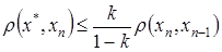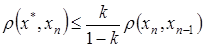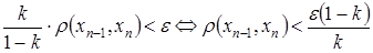 то есть если нужно найти приближение к неподвижной точке с точностью e, то следует строить итерационный процесс до тех пор, пока расстояние между двумя приближениями не станет меньше