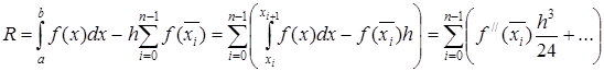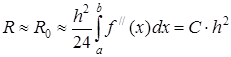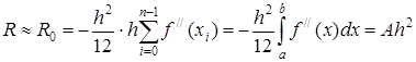 При малой величине шага h основной вклад в погрешность R будет вносить величина Применим метод средних прямоугольников к функции