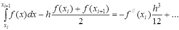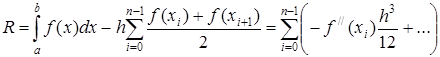 Итак, Степень шага h, которой пропорционален остаток R, называется порядком точности метода интегрирования. Метод средних прямоугольников имеет второй порядок точности. Оценим погрешность при использовании метода трапеций также в предположении, что функция