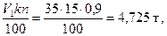 Расчет проводим на основании технологического режима чана горячей промывки (стр. 102). 1. Слив транспортной воды. Учитывая, что после слива транспортной воды в результате загрузки чана горячей промывки в загруженном пироксилине удержится Vуд =4,0 м3/т воды, объем сливаемой транспортной воды составляет Vслив=Vст-Vуд=49,0–4,0 = 45,0 м3/т. 2. Общий объем воды, находящейся единовременно в чане горячей промывки, Vобщ = V1–Vп+V2, где V1 – полезная вместимость чана, м3; Vп– объем, занимаемый пироксилином в чане, м3; V2 - объем воды под ложным дном, м3. Для типового чана V1= 35 м3. Объем, занимаемый пироксилином в чане, Vп= где ρ=1,66 – плотность пироксилина, т/м3; G – количество пироксилина в чане, т. Количество пироксилина в чане горячей промывки G= где k – массовая доля пироксилина в чане, которую принимаем равной 15%; n – коэффициент заполнения чана. Объем, занимаемый пироксилином в чане, Vп= Объем воды под ложным дном: V2= где d =4 м – диаметр чана; h1=0,2 м – высота между днищем и ложным дном. Общий объем в чане: Vобщ = 35 – 2,85 + 2,5= 34,65 м3. Принимаем Vобщ = 35 м3. 3. Количество воды, расходуемое за 1 оборот (цикл) чана горячей промывки. Объем воды, удерживаемый пироксилином, находящимся в чане горячей промывки, V′уд = 4,725 × 4,0= 18,9 м3. Принимаем V′уд = 19 м3. Объем воды, подлежащей сливу, V′сл = Vобщ – V′уд = 35–19 =16 м3. Количество воды, подлежащие сливу, равно количеству воды заливки. Тогда объем воды на одну заливку на тонну пироксилина: Vзал = Принимаем 4 м3/т. Согласно технологическому режиму производят три заливки и три слива воды. Соответственно расход воды составляет: Vвар =Vзал × 3 = 4 × 3= 12 м3/т. 4. Количество воды, поступающее из конденсационной колонны. Объем воды, испаряемой в типовом чане горячей промывки, составляет: Vисп = 2 м3/т [1]. Необходимое количество орошающей воды, подаваемой в конденсационную колонку для охлаждения и конденсации пара за 1 оборот чана, Vор = где tпод=60 °С – температура подогрева воды; tисх= 6 °С – температура воды, поступающей на орошение (расчет на зимнее время); Q=1807672 ккал – количество тепла, возвращаемое из колонны в виде подогретой воды (определяется из теплового баланса [1]). В расчете на 1 т пироксилина: V′ор = Принимаем V′ор = 8 м3/т. Общее количество воды, выходящей из колонны, Vкол= V′ор +Vисп = 8+2 = 10 м3/т. Так как для заливки в чаны требуется 12 м3 воды, к воде, выходящей из конденсационной колонны, необходимо добавить 2 м3/т свежей технологической воды.