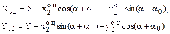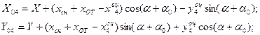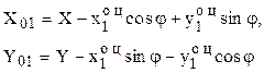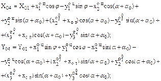 Для сокращения записи заменим везде ОЦ на О и примем Для сравнения приведем выражения связи координат для случая, когда в качестве центра НСК принята произвольная точка плоскости и обобщенных перемещений лафета - перемещение его центра масс X01,Y01