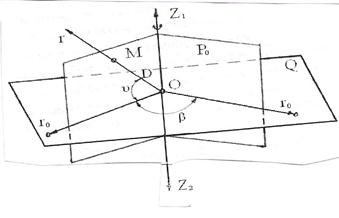 В пространственной полярной системе координат положение точки М определяется тремя координатами. · Горизонтальным углом β между плоскостями Р0 иР; · Вертикальным углом Ύ между горизонтальной плоскостью и радиусом – вектором r; · Наклонным расстоянием Д от центра координат О до точки на радиусе – векторе r.