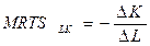 Q3=90 ц Q2=75 ц Q1=50 ц 0 земля Рис. 6.2. Карта ізоквант Ізокванта – це крива, на якій показані всі комбінації виробничих факторів, використання яких забезпечує однаковий обсяг випуску продукції. Ізокванта є графічним відображенням виробничої функції. Карта ізоквант - це множина ізоквант, що характеризують максимально можливий випуск продукції при будь-якому наборі виробничих факторів. Властивості ізоквант: 1. Ізокванта має від’ємний нахил - це означає, що вздовж даної ізокванти скорочення споживання одного фактора обумовлює збільшення використання другого фактору, щоб не допустити зменшення обсягів виробництва; 2. Ізокванта має вигляд вигнутої кривої. 3. Ізокванти, які розташовані далі від початку координат відповідають більшому обсягу випуску. Кут нахилу ізокванти, або кутовий коефіцієнт ізокванти дозволяє визначити можливість заміни одного виробничого фактора іншим у процесі їх використання. Гранична норма технологічного заміщення праці капіталом MRTSLK визначається величиною капіталу, яка може бути заміщена кожною додатковою одиницею праці при незмінному обсязі виробництва. MRTSLK дорівнює від’ємному значенню відношення зміни величини використаного капіталу до зміни витрат праці