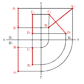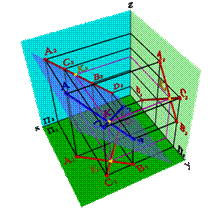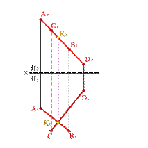 2. Пересекающие прямые расположены в общей для них проекционной плоскости, например перпендикулярной фронтальной плоскости проекций (рис. 2.25). О взаимном расположении прямых, лежащих в этой плоскости, можно судить по одной проекции, например, на горизонтальную плоскость проекций (А 1 В 1∩ С 1 D 1Þ АВ ∩ СD).