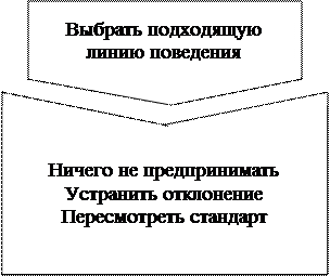 Действия. После вынесения оценки процесс контроля переходит на третий этап. Менеджер должен выбрать одну из трех линий поведения: ничего не предпринимать, устранить отклонение или пересмотреть стандарт.
