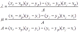 Пример: 1) xi=1, yi=1, xk= 3, yk=6, xj=8, yj=8, xp=7, yp=4,
