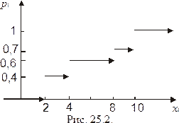 Если Если Если Построим график функции распределения вероятности (см. рис. 25.2). 3) Найдём числовые характеристики случайной величины Х. а) математическое ожидание: б) дисперсия: в) СКО: г) мода случайной величины Х – это такое её значение, которому соответствует наибольшая вероятность; наибольшая вероятность