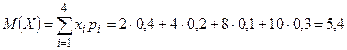 Определение 14. Модой дискретной случайной величины Х называется её наиболее вероятное значение. Замечание. Геометрически мода является абсциссой той точки полигона распределения, ордината которой максимальна. Определение 15. Начальным моментом порядка Замечание 1. В частности, Замечание 2. Пользуясь определением моментов, дисперсию можно записать в виде Замечание 3. Начальные моменты позволяют учесть большие, но маловероятные значения случайной величины. Определение 16. Центральным моментом порядка Замечание 1. В частности Замечание 2. Нетрудно показать, что 1) 3) Замечание 3. Рассмотренные моменты называют теоретическими. Пример 1. Случайная величина Х имеет ряд распределения: