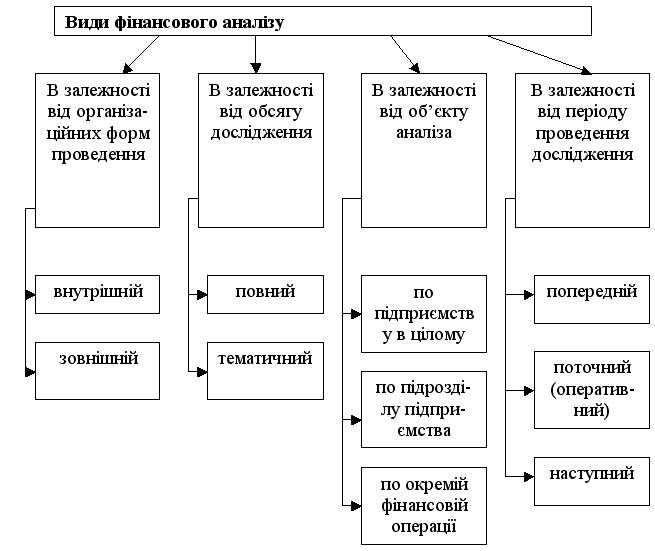 В залежності від мети, що ставить перед собою фінансовий аналітик, він вибирає ті чи інші види фінансового аналізу.