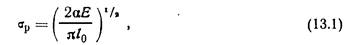 Деформируя образец, мы подводим к нему механическую энергию, которая накапливается в образце в виде энергии упругости. Если этой энергии достаточно для разрушения образца, то на наиболее опасном микродефекте начинает зарождаться трещина, которая затем разрастается, разделяя образец на части. Это основная или, как говорят, магистральная трещина. В процессе роста трещины энергия, запасенная в образце, тратится в двух направлениях. Во-первых, она идет на образование новой поверхности. Эта энергия численно равна удельной поверхностной энергии полимера, помноженной на площадь поверхности разрушения. Во-вторых, энергия затрачивается на всевозможные процессы перемещения структурных элементов на пути движения трещины. Движение структурных элементов приводит к рассеянию энергии за счет внутреннего трения и переходу ее в теплоту. Наиболее простым случаем является разрушение при полном отсутствии рассеяния энергии, когда вся запасенная энергия образца идет на образование новой поверхности. Теория разрушения материалов, в которых энергия разрушения идет только на образование новой поверхности, носит название теории Гриффита. Известно, что наименьшие возможные деформации, приводящие к разрушению, наблюдаются у полимера тогда, когда он переходит из стеклообразного в хрупкое состояние. В этом состоянии перемещения структурных элементов оказываются минимальными, а, следовательно, минимально и рассеяние энергии в виде теплоты. Поэтому теорию Гриффита часто называют теорией хрупкого разрушения. В соответствии с теорией хрупкого разрушения прочность