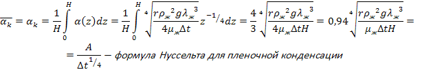При пленочной конденсации на горизонтальных трубах имеем аналогичную зависимость: