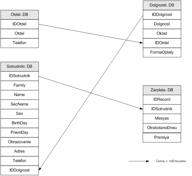 Описание структуры базы данных «Отдел кадров» Схема взаимодействия и связей со всеми существующими таблицами