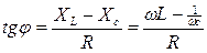 Путем аналогичных рассуждений для цепи из параллельно включенных активного, индуктивного и емкостного сопротивлений можно получить следующее соотношение: