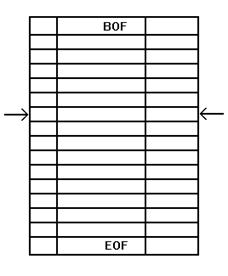 Рис.1: Любой dataset состоит из ряда записей (каждая содержит N полей и указатель на текущую запись. В большинстве случаев dataset будет иметь a прямое, один к одному, соответствие с физической таблицей, которая существует на диске. Однако, в других случаях Вы можете исполнять запрос или другое действие, возвращающие dataset, который содержит либо любое подмножество записей одной таблицы, либо объединение (join) между несколькими таблицами. В тексте будут иногда использоваться термины DataSet и TTable как синонимы. Обычно в программе используются объекты типа TTable или TQuery, поэтому в следующих нескольких главах будет предполагаться существование объекта типа TTable называемого Table1. Итак, самое время начать исследование TDataSet. Как только Вы познакомитесь с его возможностями, Вы начнете понимать, какие методы использует Delphi для доступа к данным, хранящимся на диске в виде БД. Ключевой момент здесь - не забывать, что почти всякий раз, когда программист на Delphi открывает таблицу, он будет использовать TTable или TQuery, которые являются просто некоторой надстройкой над TDataSet.