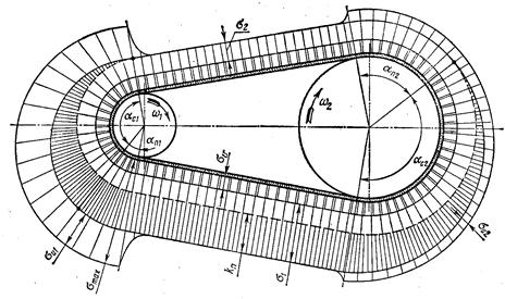 Рис. Р.10 Эпюра напряжения в ремне при работе передачи