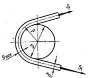 Рис. Р.11. К изгибу ремня Из формулы (Р.14) следует, что наибольшее напряжение изгиба в ремне возникает на малом шкиве D1. Обычно по соображениям компактности стремятся принимать небольшие значения D1 поэтому σИ1 может в несколько раз превышать все другие напряжения в ремне. На практике величина σИ1 ограничивается минимально допустимым значением δ/D1 (см. табл. Р.3). Напряжение изгиба не влияет на тяговую способность передачи. Изменяясь по отнулевому циклу, оно является главной причиной усталостного разрушения ремня. 4. Напряжение от центробежных сил