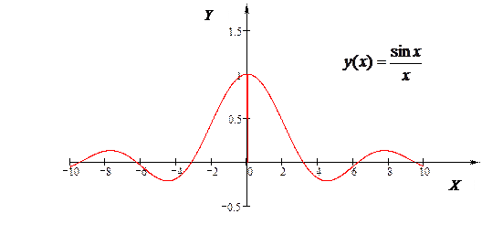 Рис. 13.3 . Поскольку в точке х=0 оба односторонних предела не существуют, точка х=0 является точкой разрыва второго рода (см. рис.13.3).