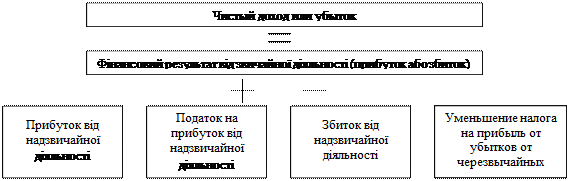 Рис. 19.5. Расчет финансового результата от обычной деятельности Чистая прибыль (убыток) рассчитывается как алгебраическая сумма прибыли (убытка) от обычной деятельности и чрезвычайной прибыли, чрезвычайного убытка и налогов из чрезвычайной прибыли (рис. 17.6).
