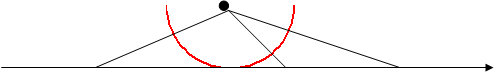 а = 0. 1 0 1 1 0 0 0 1 0 1 … N = { 1 2 3 4 5 6 7 8 9 10 … } f(a) = { 1 3 4 8 10 … } Видим, что имеется взаимно-однозначное соответствие f между действительными числами а из интервала (0, 1) и подмножествами f(a) множества натуральных чисел, ч.т.д. Теперь установим взаимно-однозначное соответствие между интервалом (0, 1) и всей числовой осью. Согнём интервал (0, 1) в полуокружность и расположим над числовой осью, как показано на рисунке: