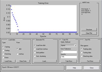 Параметры функций принадлежности выбирались достаточно произвольно, так как нет жестких правил, регламентирующих их выбор. Поэтому можно смело предположить, что работа нечеткого контроллера будет далека от оптимальной. Проведем оптимизацию параметров функции принадлежности с помощью генетических алгоритмов рассмотренными выше методами. Для этого по-прежнему будем использовать среду Matlab и редактор AnfisEdit. В качестве обучающей выборки возьмем следующую таблицу значений: Таблица 6