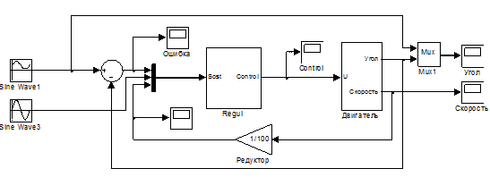 Промоделируем систему с комбинированным законом управления и нейронечетким контроллером в среде Matlab.