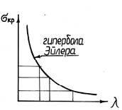 где a и b – эмпирические коэффициенты, зависящие от материала (например, для стали 40: a=321 МПа, b=1,16 МПа). Формуле Ясинского на диаграмме критических напряжений соответствует наклонная прямая.