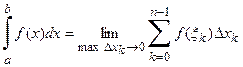Эта сумма называется интегральной суммой для функции f (x) при данном разбиении отрезка Интегральных сумм для данной функции и данного отрезка можно составить бесконечно много, так как они зависят от способа разбиения отрезка Если существует предел интегральной суммы (3), когда разбиение отрезка