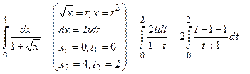 Замечание. При вычисление неопределённого интеграла с помощью замены переменной в найденной первообразной приходилось возвращаться к старой переменной х. Если в определённом интеграле наряду с переменной интегрирования заменить и пределы, то надобность возвращения к исходной переменной отпадает.
