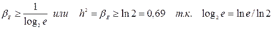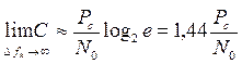 При Рс/Рш =1 в (3.1) → С = ∆fk. С учетом нормировки по осям графика этому равенству соответствует точка (С· N0 /Pc = Pш /Pc =1) с координатами (1,1). Пропускная способность заметно возрастает с увеличением ∆fk до тех пор, пока Рс /Рш ≥1 и стремится к пределу 1,44 Рс/N0, т.е. максимальное значение параметра С имеет место при h →0. б) Найдем граничные значения Шеннона для удельных затрат полосы и энергии при cкорости передачи информации Rmax = С. Удельные затраты полосы в канале связи по определению равны