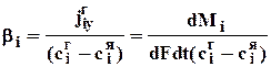 здесь jiygг, qyтг, tyxвг - потоки вещества компонента i, тепла и импульса через границу раздела фаз без учета конвективных составляющих; bi или Как правило, конвективный перенос субстанций через границу раздела фаз отсутствует и jiyтг, qyтг, tyxтг представляют собой полные потоки. Однако и в этом случае внутри пограничного слоя может осуществляться конвективный перенос в направлении оси Y. Для нахождения полного потока при y ¹0 к соотношениям типа (89) необходимо добавлять конвективную составляющую, например, rcрTWу При наличии конвективного переноса субстанций через границу раздела фаз его необходимо учитывать дважды, во-первых, добавляя конвективные члены при определении полного потока к уравнениям и, во-вторых, вводя поправки к коэффициентам массо-, тепло-, и импульсоотдачи, найденным в отсутствии конвективного переноса через межфазную границу (учет так называемых эффектов "вдува" или "отсоса"). Разница значений химических потенциалов или концентраций, температур, скоростей у границы раздела фаз и в ядре фазы носит название движущей силы массо-, тепло- и импульсоотдачи. Отличие ее от нуля является необходимым условием протекания соответствующего процесса. Смысл коэффициентов легко понять, решив относительно них эти уравнения