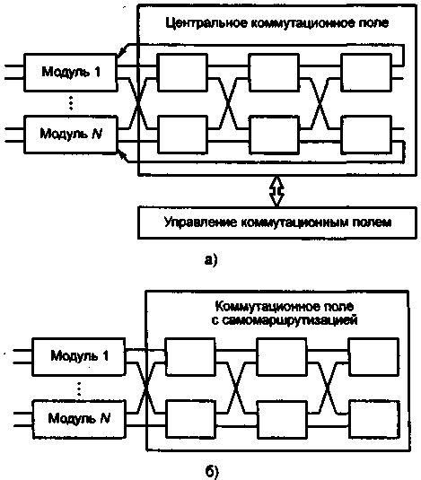 Рис. 11 Децентрализованное управление: а) с применением процессора коммутационного поля б) без применения процессора коммутационного поля и односторонним коммутационным полем