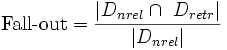 где Drel — это множество релевантных документов в базе, а Dretr — множество документов, найденных системой. Выпадение характеризует вероятность нахождения нерелевантного ресурса и определяется, как отношение числа найденных нерелевантных документов к общему числу нерелевантных документов в базе: