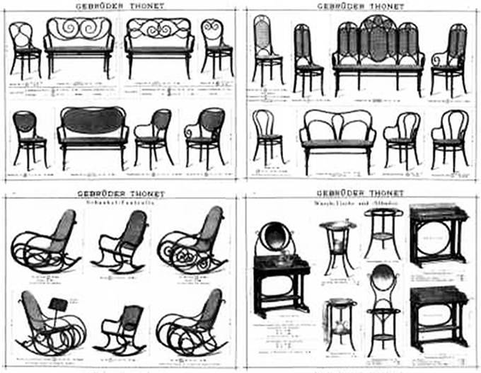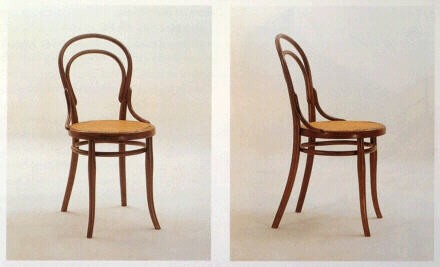 Ярчайший и уникальный пример дизайна середины XIX в. - работы выдающегося мастера художника по мебели Михаэля Тонета. Он создал комплексную программу производства мебели, работающую успешно и по сей день. Предложенные им технологии и приемы конструирования совершили переворот в формообразовании, его венские стулья буквально наводнили весь мир.