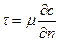 Мы нашли распределение давления по длине трубы и напряжения трения по радиусу, но нас интересует распределение скорости по радиальной координате, для этого необходимо связать скорость с напряжением. И. Ньютон предположил (это недоказуемое утверждение), что для многих жидкостей касательное напряжение пропорционально поперечной производной скорости: