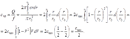Итак, давление поперек трубы постоянно, а скорость меняется по квадратичному закону. Теперь, для перехода к модели одномерного движения необходимо осреднить скорость.