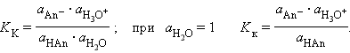 Произведения констант диссоциации сопряженных кислот и оснований в водных растворах равно ионному произведению воды. По известным K K(K осн) можно легко найти значения сопряженных K В.