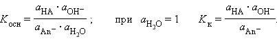 В определенных условиях многие вещества могут вести себя как кислота или как основание. Эти два понятия неразделимы, а потому правильнее говорить о кислотно-основных свойствах данного вещества. В соответствии с законом действующих масс константы равновесия реакций протолиза сопряженных кислот и оснований в воде связаны между собой простым соотношением