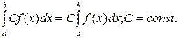 Пусть указанные интегралы существуют. Тогда выполняются следующие свойства. 1. Постоянный сомножитель можно выносить за знак определенного интеграла.