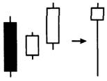 Бычья модель три дня изнутри вверх сводится к бычьему молоту, что соответствует характеру модели (рис. 3-94). Медвежья модель три дня изнутри вниз сводится к медвежьей падающей звезде, что также поддерживает характер самой модели (рис. 3-95).