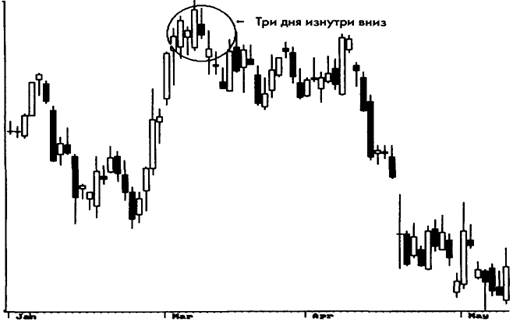 2. Третий день дает более высокую цену закрытия для трех дней изнутри вверх и более низкую — для трех дней изнутри вниз.