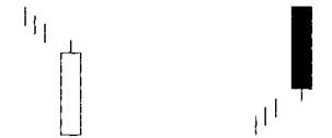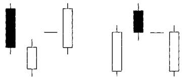 Гибкость фигуры Сценарии и психология за фигурой Правила определения Комментарий «Встречающиеся Линии» формируются, когда противоположного цвета свечи имеют одинаковую цену закрытия. В литературе «Встречающиеся Линии» называют «Линии Противоположной Атаки». «Деи сен» означает линии, которые встречаются, а «гиакушу сен» означает линии взаимной защиты. Бычья фигура «Встречающиеся Линии» Эта фигура обычно случается во время понижения. Первый день фигуры является длинной черной свечой (рис 3-45). Следующий день открывается резко ниже и ставит нижний тренд в компромиссное положение. Бычья фигура «Встречающиеся Линии» в чем-то сходна в концепции с бычьей «Пронизывающей Линией» за тем исключением, что бычья фигура «Встречающиеся Линии» не двигается в белое тело предыдущего дня. Оно возвращается к закрытию предыдущего дня. Вторая свеча «Пронизывающей Линии» далеко входит в черное тело, которое делает более значительным перелом дна, чем бычья фигура «Встречающиеся Линии». Также не спутайте эту фигуру со свечой фигуры «На Шее». Медвежья фигура «Встреч,шшиеся Линии» Медвежья фигура «Встречающиеся Линии», как и «Завеса Темных Облаков», открывается выше верха предыдущего дня (рис. 3-46). В отличие от «Завесы Темных Облаков», закрытие не входит в белое тело предыдущего дня Вот почему «Завеса Темных Облаков» является лучшим индикатором верхнего перелома, чем медвежья фигура «Встречающиеся Линии» 1. Две свечи имеют тела, которые растягивают текущий тренд. 2. Цвет первого тела всегда отражает тренд: черный для нижнего тренда и белый для верхнего 3. Второе тело имеет противоположный цвет. 4. Закрытие каждого дня на одном уровне. 5. Оба дня должны быть длинными. Бычья фигура «Встречающиеся Линии» Рынок находился в нижнем тренде, когда формируется длинный черный день, который далее подтверждает тренд. Следующий день открывается со скачком вниз, затем повышается в течение дня к закрытию того же дня на уровне предыдущего дня. Этот факт показывает, как трейдеры используют отметки цены предыдущего дня: велики шансы, что произошел перелом Если третий день открывается выше, это служит подтверждением. Фигура «Встречающиеся Линии» должна состоять из двух длинных свечей. Однако много раз второй день не такой длинный, как первый. Это не затрагивает способность фигуры; подтверждение предложено. Лучше, если каждый день будет «Закрытым Марубозу». Фигура «Встречающиеся Линии» переламывается к одной свече, которая в этом случае не предлагает поддержку (рис. 3-47 и 3-48). Единичные линии сходны с первой свечой в этой фигуре, и тень тянется в направлении второго дня. И снова перелом не подтверждает фигуру, и не указывает недостаток поддержки.