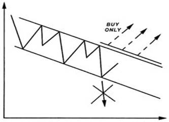 Figure 3.28 Я никогда не начинаю торговлю, входя в рынок на прорыве верхней границы возрастающего канала и нижней границы опускающегося канала, если нет других дополнительных сигналов, полученных в это время.